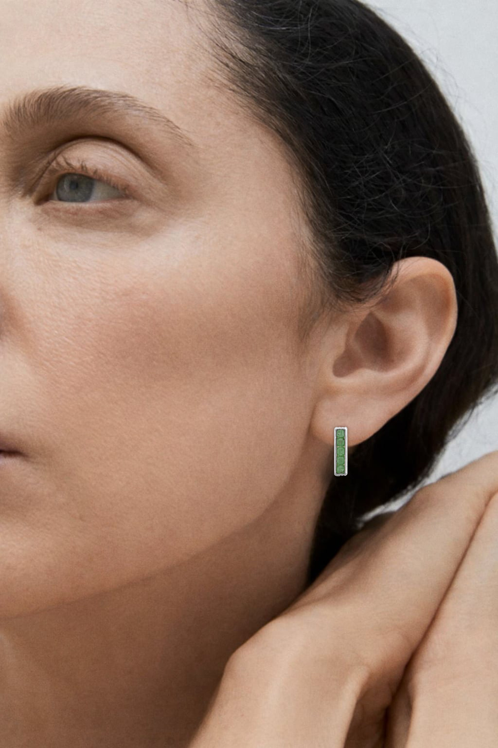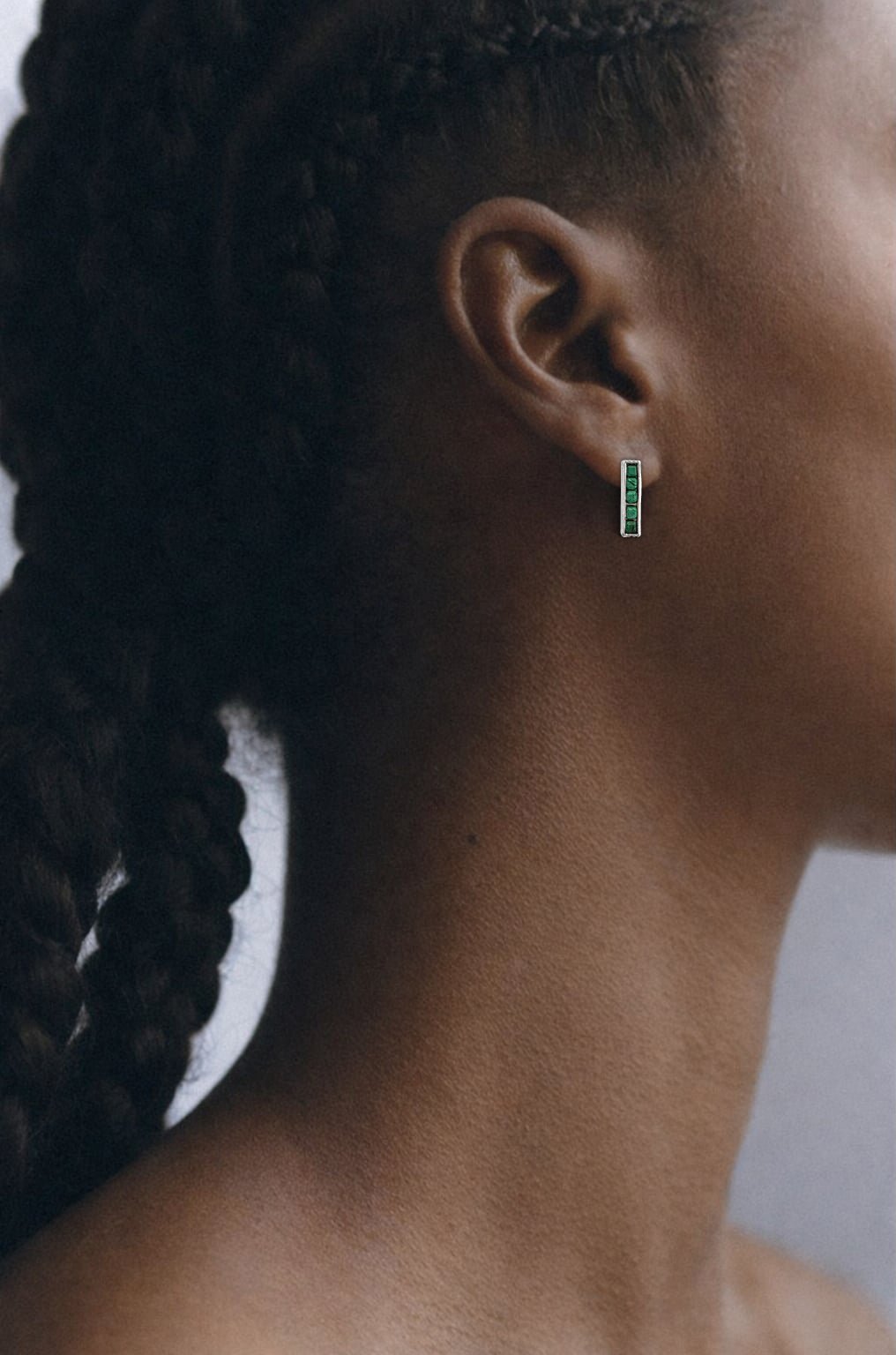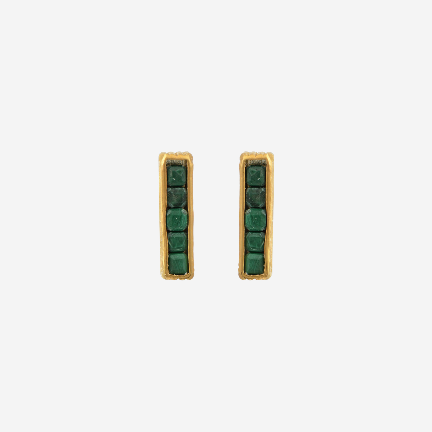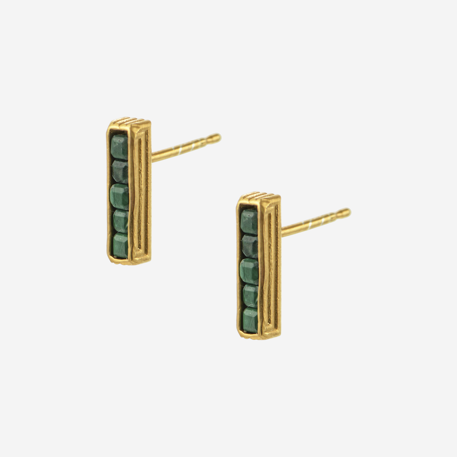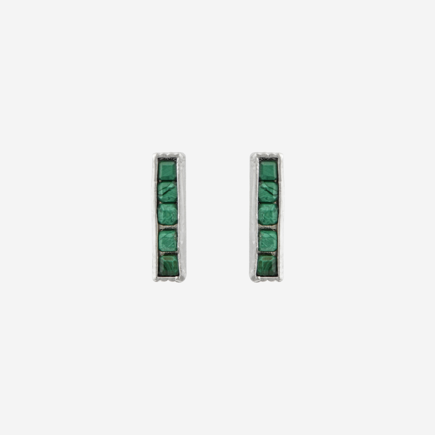 Part of the Tetra collection, this handcrafted pair of stud earrings features a minimal geometric form. The elongated rectangular silhouette with cube-cut semi-precious stones creates an elegant and contemporary piece.